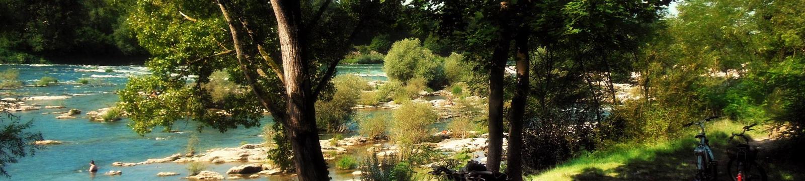 Naturdenkmal "Isteiner Schwellen" im Altrhein, der hier über kleine Felsen und Klippen sprudelt. Wunderschönes Badeparadies im Fluss mit Natur-Whirlpools. Etwas weiter flussabwärts findet sich jedoch am Ufer ein geheimnisvolles Wäldchen und Dickicht mit verschlungenen Pfaden und Liebesnestern.