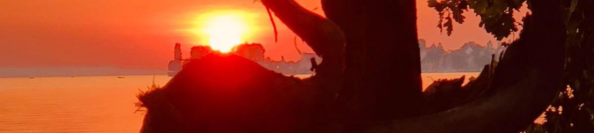 Links von der verfallenen Villa am See geht ein Weg direkt zum Strand!