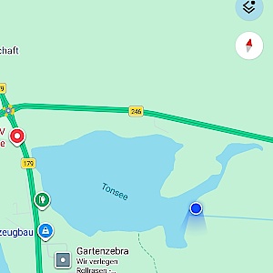 Am Tonsee gibt es auf der nördlichen Seite viele Badestellen mit durchaus vielen Besuchern im Sommer. An der Ostseite gibt es 3 ruhige Badestellen. Diese grenzen direkt an ein Feld. Dort gibt es so gut wie keine Spaziergänger oder ähnliches. Zur östlichen Seite kommt man am besten über den Gräbendorfer Weg. Der befindet sich südlich des Sees. Dort kann man auch parken. Einfach kurz folgen bis links ein kleines Waldstück in ein Feld übergeht. Parken und max 4 Minuten nach Norden den See entlang bis zu den Badestellen.