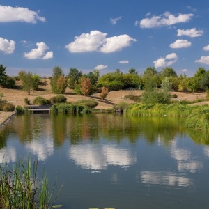 Schöne , neu angelegte Parkanlage mit etlichen Sitzgelegenheiten und großen Teich. Eine kleine Wohlfühloase Am Abend sicher zu empfehlen, tagsüber ein wenig auf Hundebesitzer achten.