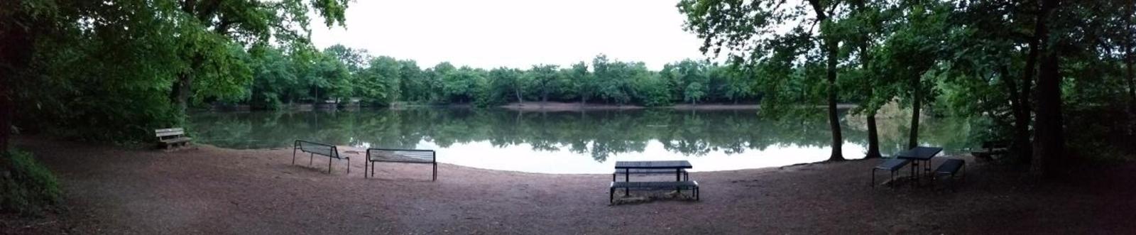 - Befestigter Rundweg rings um den See mit vielen Bänken, Tischen und einer Hütte als möglicher Ort bei Regen. Durch die Nähe zum Flughafen, vor allem in bewölkten Nächten, ausreichend hell. Wer es stiller bevorzugt weicht auf den hinteren Waldteil aus.