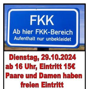 Am 29.10 von 16-21 Uhr findet im New Erotika, Wuppertal Elberfeld unsere beliebte FKK Party statt. Für die Kleidung und Wertsachen haben wir Schließfächer. Die Kontakt Bar mit unserer netten Bardame ist über den gesamten Zeitraum geöffnet. Das miteinander in Kontakt treten ist an unserer Bar ziemlich ungezwungen. Nette Gespräche mit unserer Bardame erhöhen zudem den Wohlfühlcharakter. Tauchen Sie ein in die nackte, hemmungslose Atmosphäre und seien sie neugierig und schauen einfach mal unverbindlich vorbei.