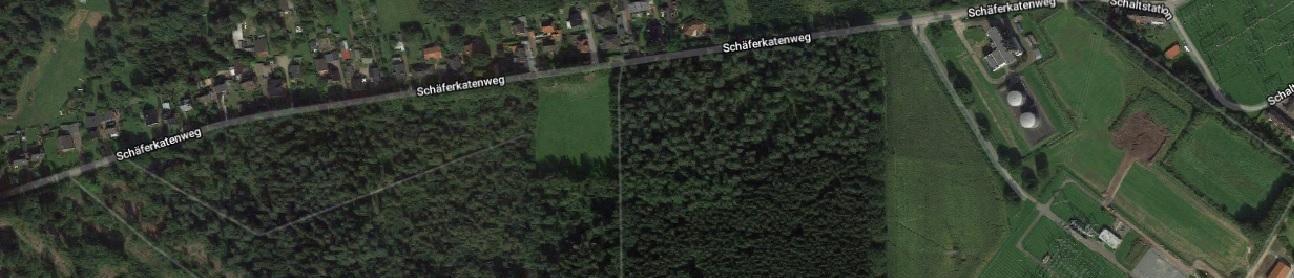 In Osterrönfeld von der Bahnhofstraße aus in den Schäferkatenweg. Nach etwa 1,2 Kilometern (nach den Häusern auf der linken Seite) geht vor vor dem Kraftwerk rechts eine Sackgasse zum Umspannwerk rein.