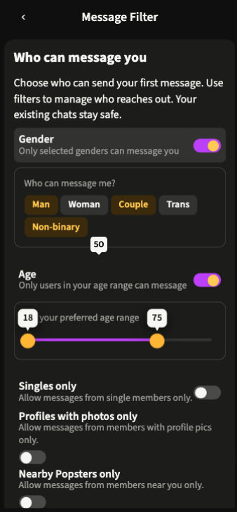 You decide who slides into your DMs.