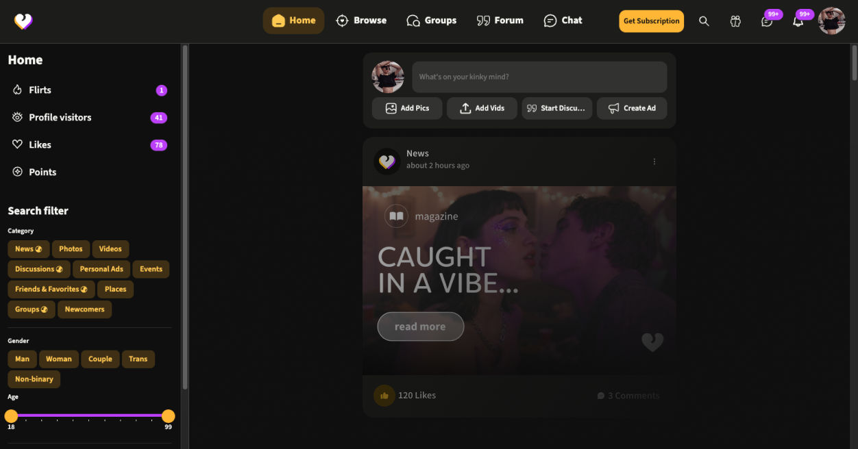 Also: the filters finally got their act together. No more squinting for a tiny icon just to search. The filters are now always visible in the sidebar — whether you're stalking the feed, browsing cuties, checking ads, or vibing in forums. And they’re hot. Like, functionally hot.